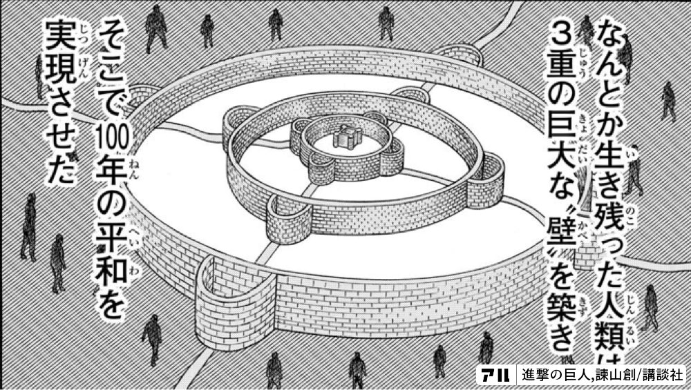 (引用:DRSなんとか生き残った人類は3重の巨大な。壁を築き。全sそこで10年の平和を実現させた - 進撃の巨人 | アル (alu.jp))